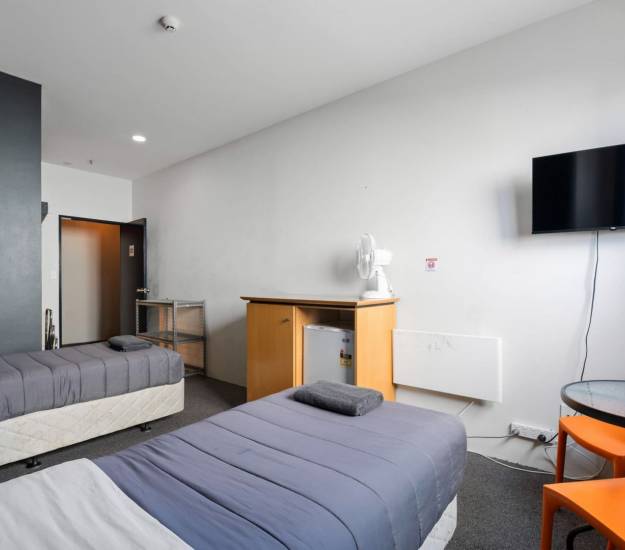 Private Room with two singles and an attached ensuite bathroom Bed Linen, heating and towels provided Equipped with a small table and chair/s. Extra blankets and fresh towels available on request. Communal kitchen facilities available in the hostel